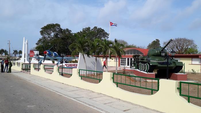 Gleich am Eingang des Museums fallen den Besuchern die Gedenktafel mit den Namen aller Gefallenen, das Flugzeug vom Typ Sea Fury sowie die Nachbildungen des Panzers T-34 und der Selbstfahrlafette Sau-100 ins Auge, mit der Fidel Castro das amerikanische Schiff Houston angriff.