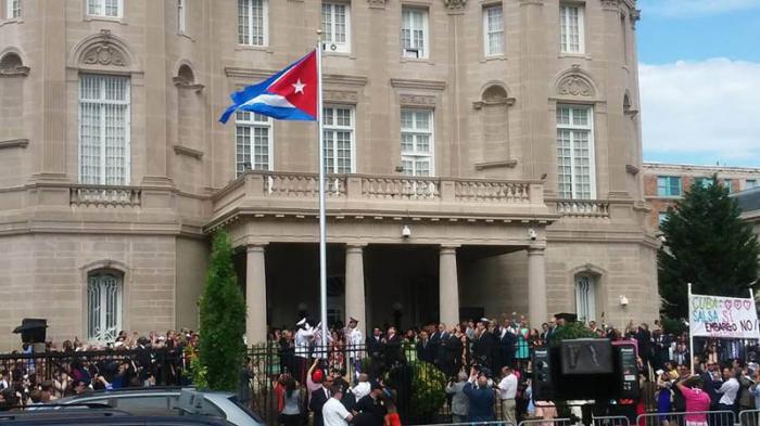 WASHINGTON – Zum ersten Mal seit mehr als einem halben Jahrhundert hörte man heute in der Hauptstadt der USA die Töne der kubanischen Nationalhymne und zur Wiedereröffnung der Botschaft Kubas in den Vereinigten Staaten wurde offiziell die Flagge Kubas gehisst.