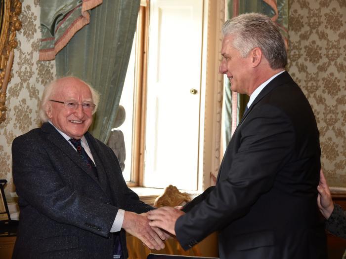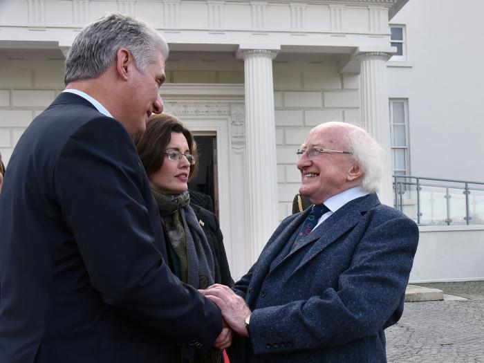 Und mit der noch frischen Erinnerung an seinen Besuch in der kubanischen Hauptstadt gestand Higgins: „Es war eine Ehre, vor zwei Jahren der erste Präsident Irlands zu sein, der Kuba besuchte. Unsere beiden Völker, das irische Volk, muintir na hÉireann in unserer alten keltischen Sprache, und das kubanische Volk, muintir Chúba, haben im Laufe der Jahrhunderte tiefe Freundschafts- und Solidaritätsbeziehungen gehabt, eine Freundschaft und Solidarität, zu deren Wiederbelebung und Stärkung Ihr Besuch in Irland beitragen wird, wie ich hoffe“.