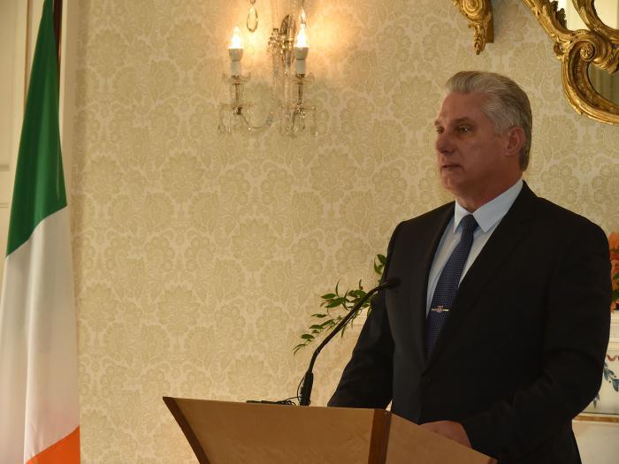 „Lassen Sie uns heute auf Frieden und Unabhängigkeit anstoßen“, sagte Díaz-Canel, „auf die Freundschaft zwischen den Völkern Kubas und Irlands, auf dass wir immer im gleichen Meer des Kampfes und der Hoffnung verbleiben.“