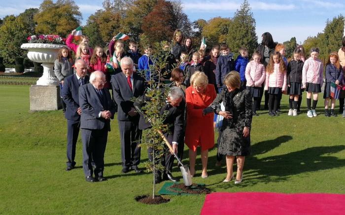 So wie jene irische Eiche, die Teil des die offizielle Residenz umgebenden Waldes ist, dessen Bäume die Plakette mit dem Namen des Pflanzers tragen, wächst die Freundschaft beider Nationen, die Tausende von Kilometern entfernt liegen, aber das gleiche Verlangen nach Unabhängigkeit haben.