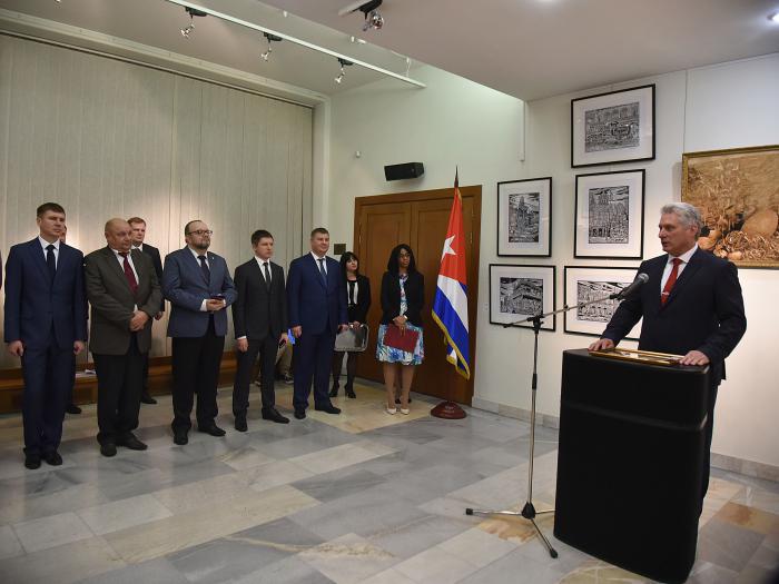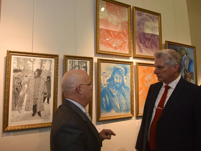 Dort nahm der Präsident auch an der Einweihung der Gemäldeausstellung Meinem Havanna treudes bildenden Künstlers Yosvany Martínez teil, die der Stadt Havanna zu ihrem 500. Jahrestag und dem Comandante en Jefe Fidel Castro Ruz gewidmet ist. „Es ist eine Hommage an Havanna“, erklärte der Maler, „dasein Wahrzeichen und Symbol Kubas ist, aber auch an sein heldenhaftes Volk, das nicht aufgehört hat zu kämpfen.“ Alles das mitten im Herzen von Moskau.