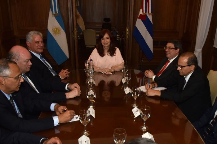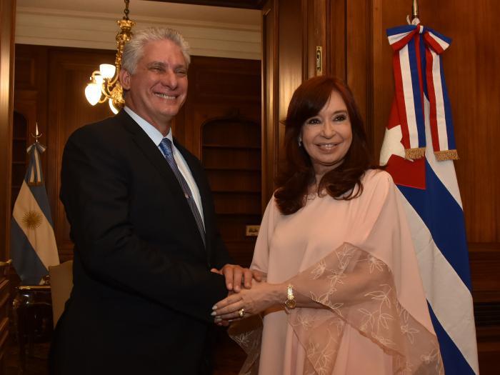 Kurz bevor er seine Arbeitsagenda in Argentinien abschloss und am Mittwochnachmittag nach Havanna zurückkehrte, traf sich der Präsident der Republik Kuba im Nationalkongress mit der Vizepräsidentin Cristina Fernández de Kirchner. Angesichts der Freundschaft, die sie verbindet, und der gegenseitigen Bewunderung für ihr jeweiliges Land waren die Worte der beiden Persönlichkeiten von Herzlichkeit und Respekt geprägt.