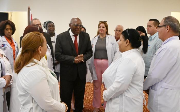 Der Vizepräsident übermittelte seinen Dank und herzliche Grüße im Namen des kubanischen Volkes, des Präsidenten der Republik, Miguel Díaz-Canel Bermúdez, und des Gesundheitsministeriums.